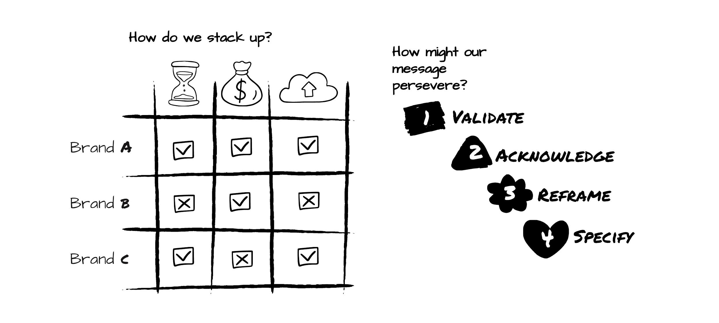 Messaging frameworks help bring this to life. What pain are customers living with? What transformation do we offer? What makes us meaningfully different? Clear answers to these questions become the foundation for launches, campaigns, and conversations—and a signal that we see the big picture fast.
